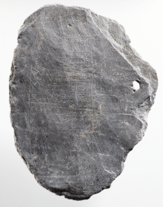 טקסטים בני מאות שנים חקוקים באבן. אבן ועליה רשימת שמות וסכומי כסף שנמצאה בחפירות בקלן | צילום: סטפן ארנדט LVR